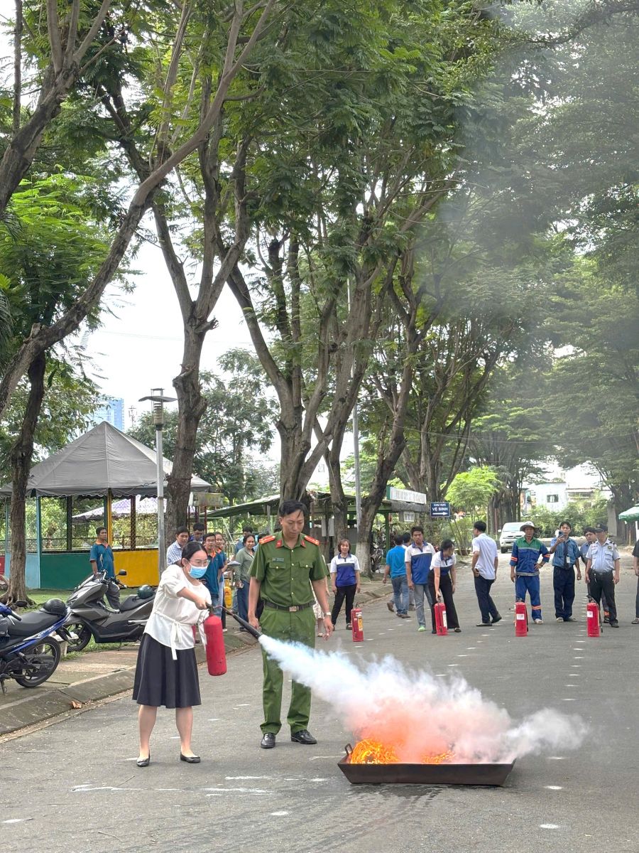 Trong phần thực hành, Người lao động được tập huấn kỹ năng, nghiệp vụ, quy trình xử lý trong công tác PCCC bao gồm, thực hành sử dụng các bình chữa cháy thông dụng; xử lý tình huống cháy nổ, củng cố khả năng ứng phó nhanh và hiệu quả khi có sự cố, góp phần xây dựng môi trường làm việc an toàn, chủ động phòng ngừa cháy nổ trong toàn Công ty.